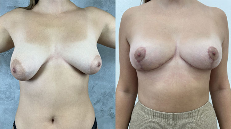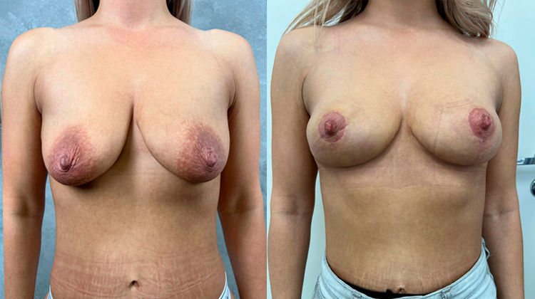 • Если есть избытки тканей и редукция нужна — удаляются излишние ткани молочных желёз и жировая ткань в нижней области груди со сдвигом вверх. Возможно уменьшение ареол сосков.